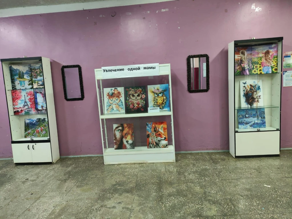 В фойе Дома культуры была организована выставка «Увлечение одной мамы»- работы Луниной М.Я .