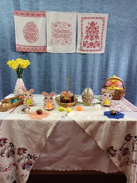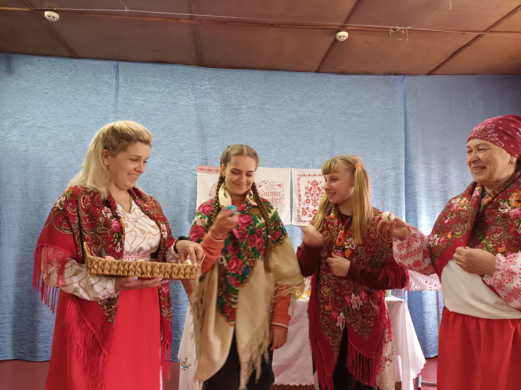 В сельском Доме культуры состоялись посиделки «Пасхальным небом освещён мой дом», посвященные великому православному празднику. На мероприятие участники познакомились с историей празднования Пасхи, обычаями и символами праздника. За пасхальным столом поделились своими рецептами пасхальной выпечки и оригинальными способами покраски яиц. А также смогли увидеть творчество местных рукодельниц.