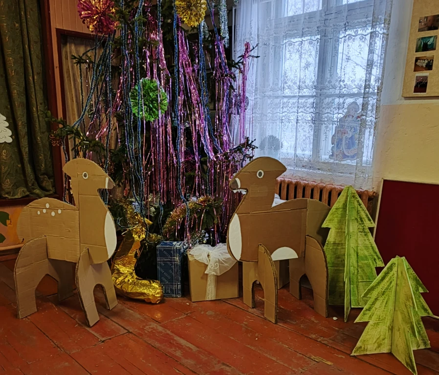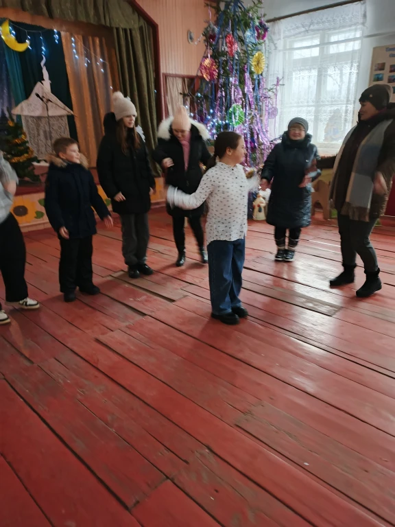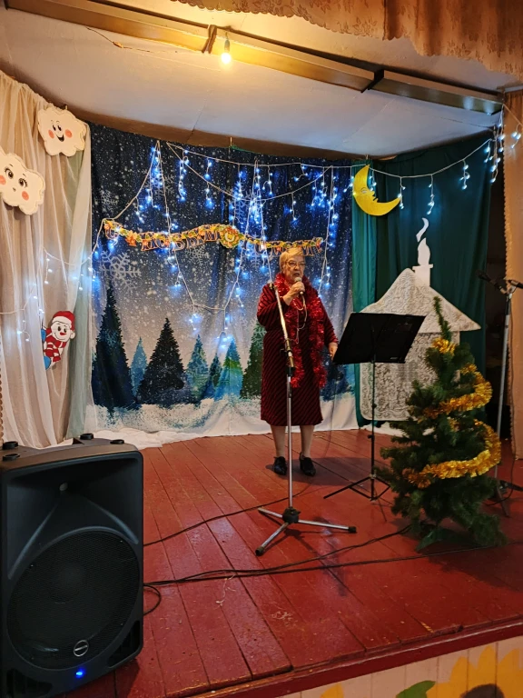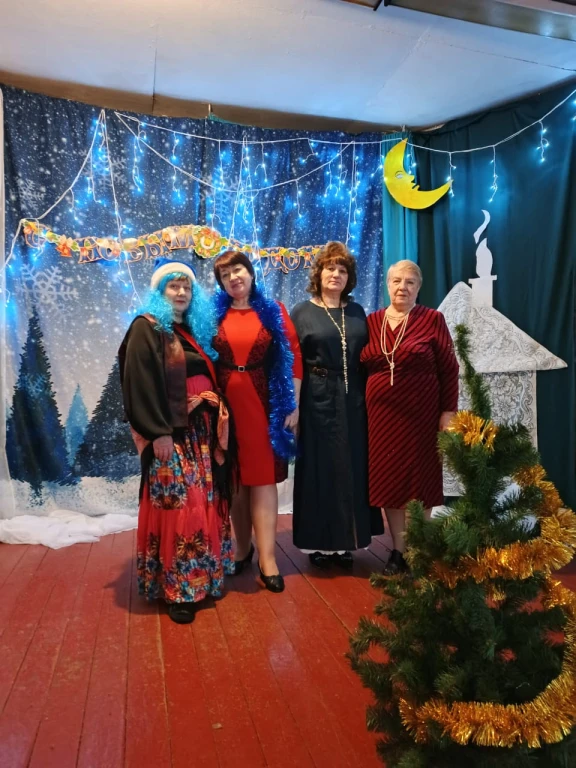 Новогодние праздники — это ожидание чуда и волшебства. Поэтому все мероприятия проходят как-то по особенному. Разбросав снежинки в зале на красавице елке, метель замерла. И только любопытные снеговики выглядывали из-за кулис. В заснеженном лесу играли звездочки на небе, а избушка расписанная морозным кружевом придавала таинственности и загадочности. Олени привезли посылку и подарки и тоже мирно отдыхали возле ели . Зрители, которые пришли на наш вечер, сразу погружались в сказочную атмосферу. Дед Мороз и Снегурочка не забыли и пришли к нам в гости для поздравления все собравшихся в зрительном зале. Вечер удался, ведь скучать не пришлось никому: загадки, ребусы, задания и конкурсы шуточные и серьезные. Был и новогодний поезд с призами и сладостями. Ну и как же без музыкальных поздравлений от участников художественной самодеятельности нашего клуба. Расходились все с хорошим настроением. До новых встреч !!!