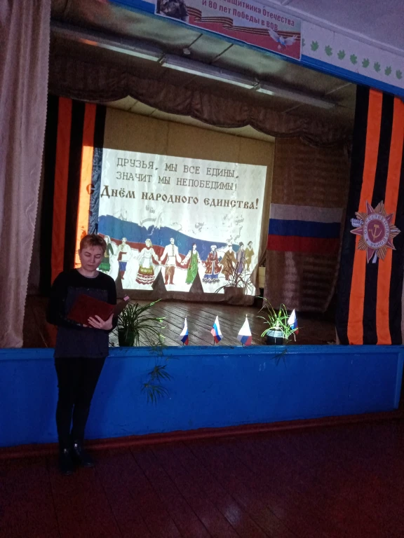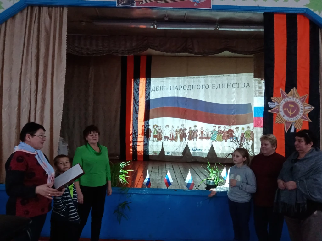 Сельский клуб совместно с библиотекой подготовили и провели познавательную программу «Мы единая семья». Библиотекарь ознакомила с историей праздника, которая сопровождалась с электронной презентацией «День народного единства». Присутствующие мероприятия узнали о славных сынах Отечества — Дмитрии Пожарском и Кузьме Минине. Для закрепления, услышанного и увиденного, была проведена викторина. Каждый запомнил, что сильна Россия только тогда, когда она едина.