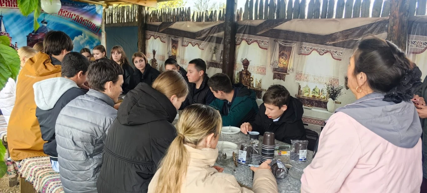 Старшеклассники Новосильской СОШ познакомились с историей русского быта, окунулись в мир фольклора, узнали о жизни и быте наших предков: как они жили, одевались и развлекались. Также ребята могли сфотографироваться, а в завершении их угощали чаем с пирогами, блинами и вкусным вареньем.